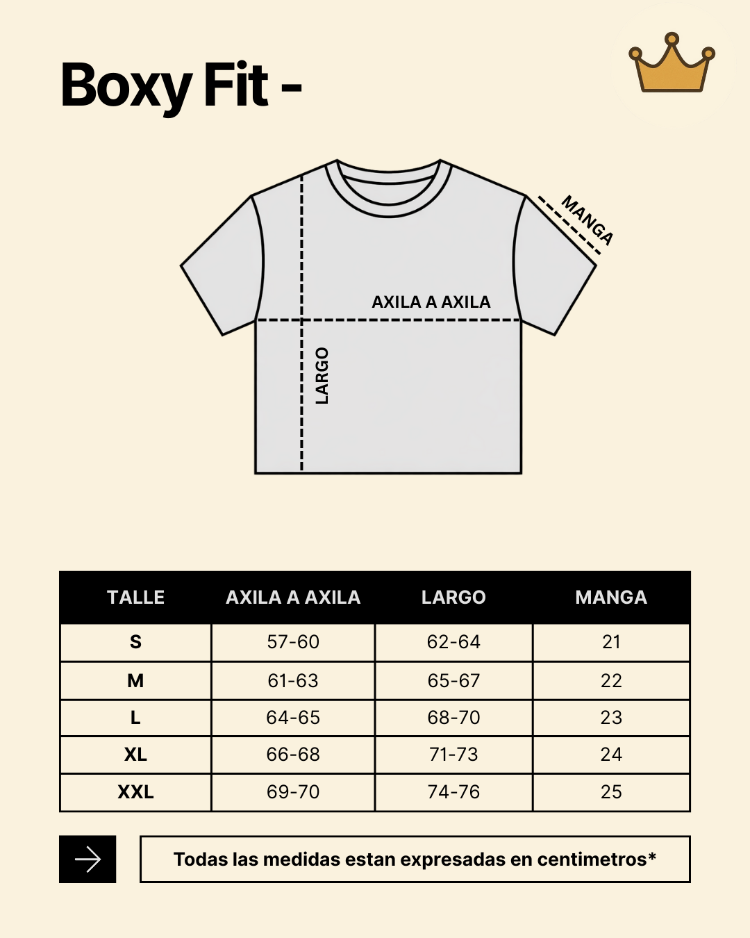 Boxy Fit - Las remeras boxy fit tienen un corte cuadrado y holgádo. Son anchas pero notablemente mas cortas, generalmente a la altura de la cintura o ligeramente por encima, lo que ayuda a crear un ilusionismo de piernas mas largas.