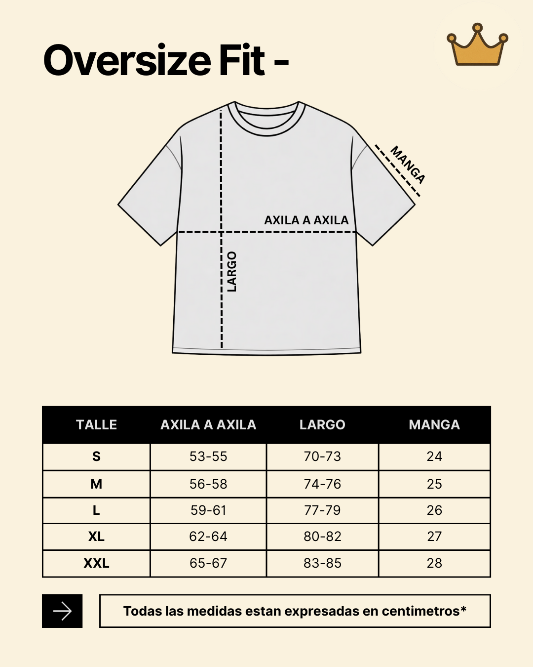 Medidas estandar para nuestras prendas. Si aun te quedan dudas podes consultarnos por Whatsapp.