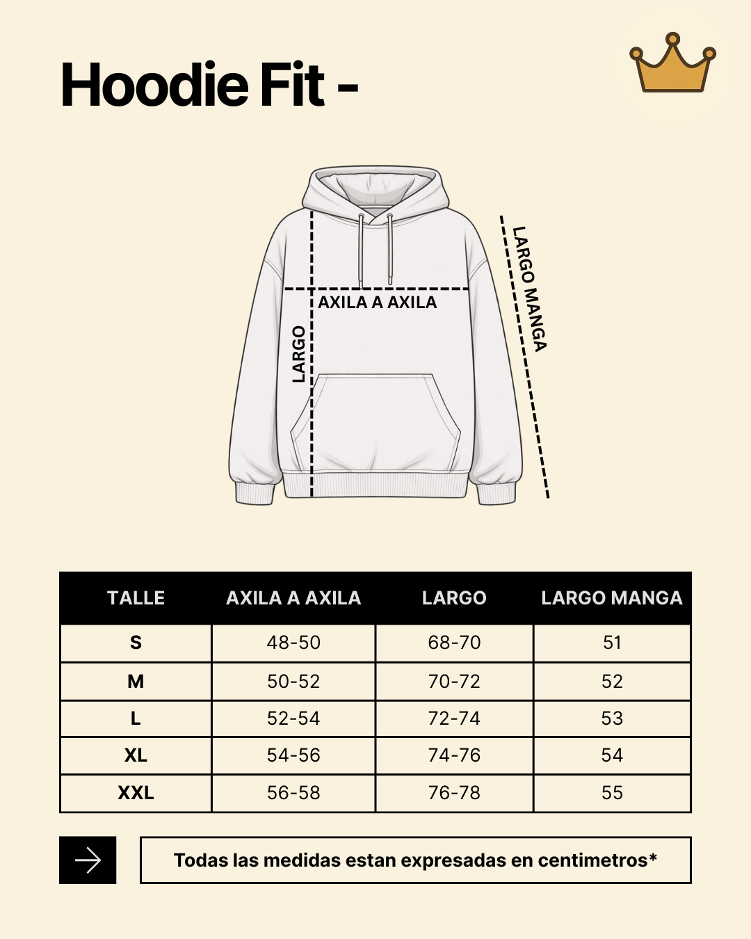 Hoodie Fit - Un ajuste ideal equilibria la comodidad con una silueta limpia, evitando que quede demasiado apretado o excesivamente holgádo.