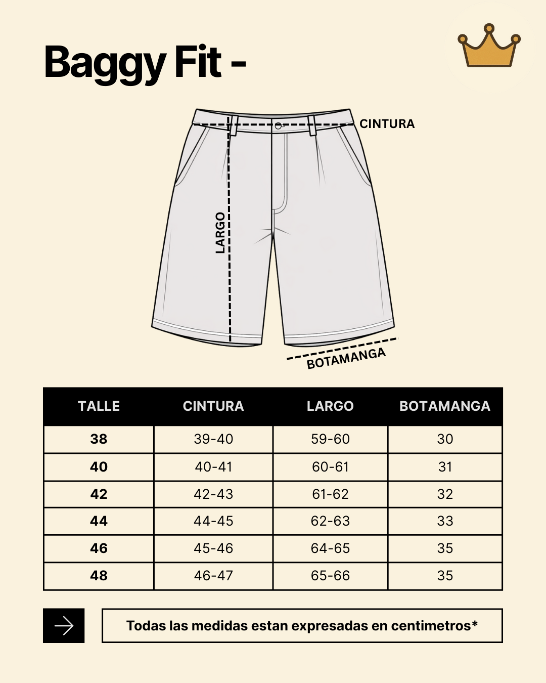 Baggy Fit - Una bermuda baggy fit es una prenda holgáda y ancha inspirada en la moda urbana de los años 90 que prioriza la comidad y un estilo suelto. Se caracteriza por su corte amplio desde la cadera hasta el bajo, con una silueta relajada.